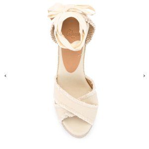 Espadrille wedge sandals with distress criss-cross toe detail. Lace-up ankle. Worn only a few times.
