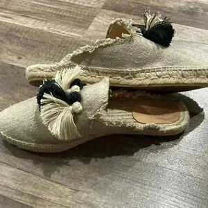 Castaner Canvas Tassel Accents Neutral Flat Mules EU 39