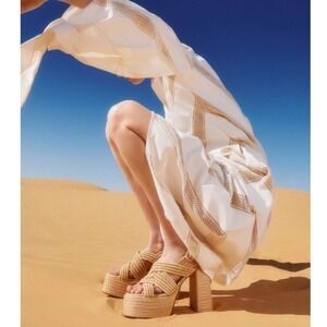 Keywords: Castaner, espadrille sandals, platform heels, woven sandals, raffia shoes, block heel sandals, summer sandals, bohemian shoes, beach vacation shoes, wedding guest shoes, size 39, nude sandals, beige sandals, ankle strap sandals,