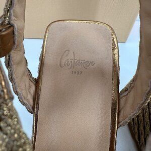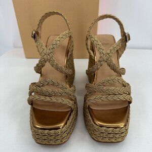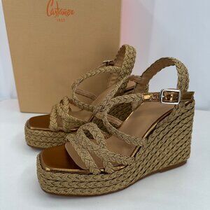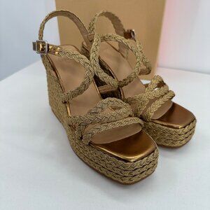 Castaner Gold Metallic Wedge Sandals Braided Straps 37 6.5 Womens Made In Brazil