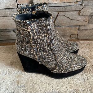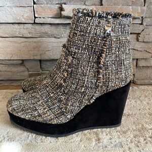 Castaner Tweed Quiaca Platform Wedge Ankle Boots Booties Textured Velvet: 39