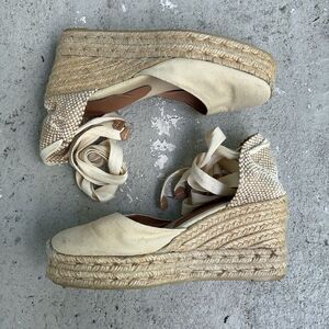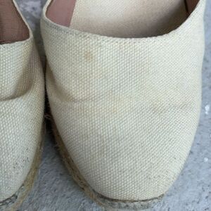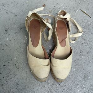 Check out the pictures. These are in good condition, no damage, but they do need some minor cleanup, which I show in pictures. Platform height is 1 inch heel is 3 inches. Soles are good.