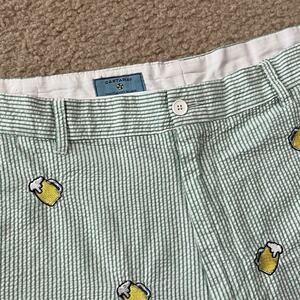 Castaway Nantucket Island Men's Seersucker Beer Mug Chino Shorts Green Size 44. Please see all images closely for condition. Measurements are provided as tags are not always accurate.