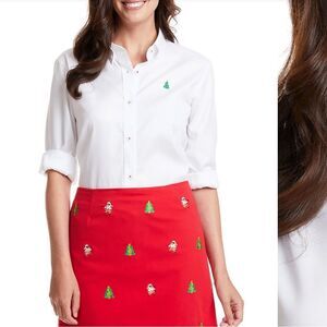 Castaway Nantucket Island White Oxford Shirt with Embroidered Christmastree L