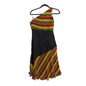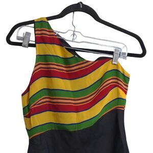 Castelbajac Womens Shift Dress Black Striped One Shoulder Flutter Hem Italy 42