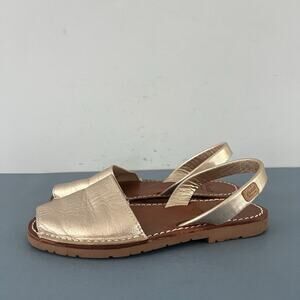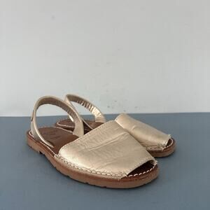 Handmade from the beautiful Spanish island of Menorca, the Castell Madona sandals in a gold leather upper will be the perfect addition to any wardrobe. Team them up with dresses, jeans, or shorts for a cute Mediterranean look!