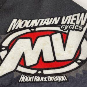 item is used in good condition. No rips tears or holes. Dark spots on right sleeve. There really light spots on both sleeves (not on the body) not sure if it’s part of the design or from cycling in water puddles