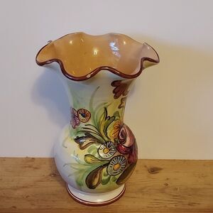 Castelli Italian Handpainted Vase ceramic pottery handmade floral design