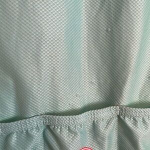 Size small. A few pulled areas as noted in photos. Super lightweight and great for hot days. Great for us folks w longer torsos :)