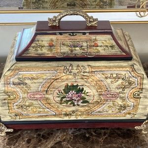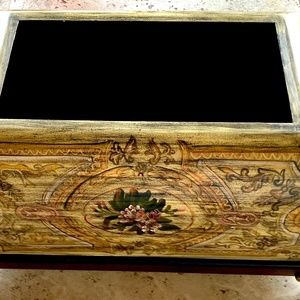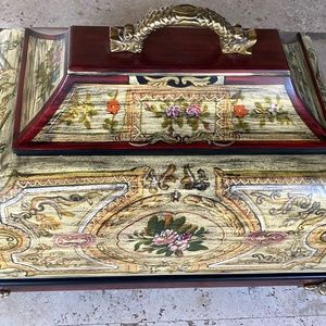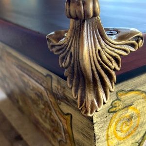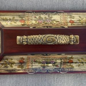 Castilian Imports Decorative Box 9958 Thick Wood w/ Koi Fish Handle Brass Legs