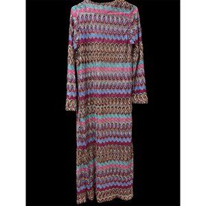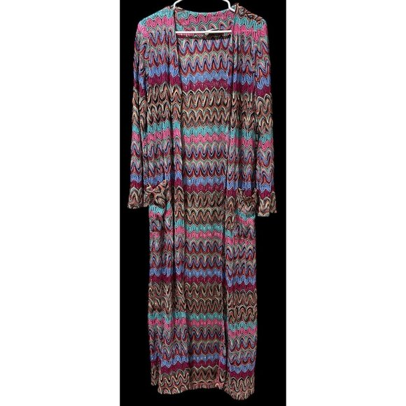 Casting Med Boho Hippie Crochet Maxi Length Duster Cardigan Pocket Colorful