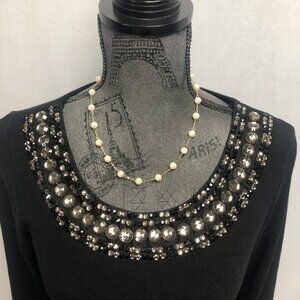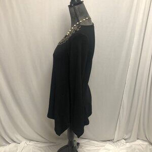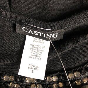 Casting Top Womens Size Small Bedazzled Black Knit Concave Hem Tunic Party NEW