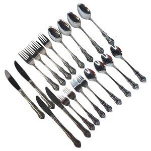 Castle Court Stainless Flatware CCS15 Flowers Roses Fork Spoon Knife 24 Pieces