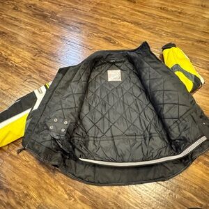 Castle Racing winter jacket. Stylish racing jacket in yellow and black with white accents. Perfect for motorsport enthusiasts. Youth large! Excellent condition
