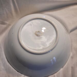 The CastleCourt Fine China Wheat Spray Pattern Serving Bowl is a vintage piece with a classic wheat spray design and silver trim. Made of high-quality porcelain, this round serving bowl features a glossy finish and is perfect for all occasions. The decorative piece from Japan adds a touch of elegance to any table setting. The stackable and art pottery production style make it a versatile and stylish addition to your serveware collection.