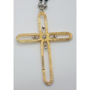 Castlecliff Two Tone Gold Tone Silver Tone Cross Pendant Black Chain Necklace