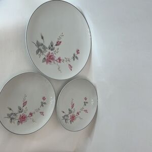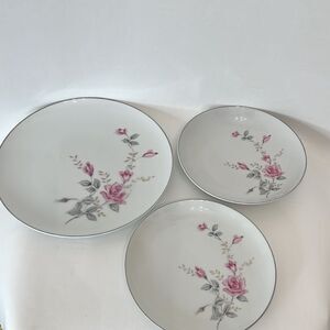 Castlecourt Rose Glow Japan Fine China Plate Bowl Saucer Pink Rose Silver Rimmed