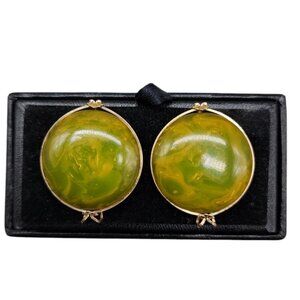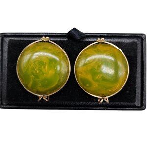 Castlecraft 14kgp Bakelite Clip On Earrings Marbled Lime Green Vtg Original Box