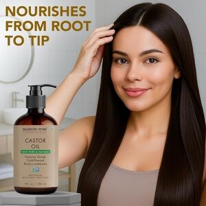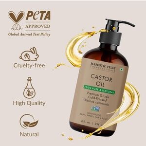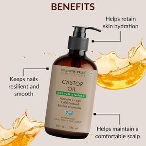Majestic Pure Castor Oil with Glass Bottle - 100% Pure & Natural - Premium Grade, Cold Pressed, Hexane Free - Hair, Eyelashes, Eyebrows, Nails - Moisturizing & Nourishing - 8 Fl Oz
