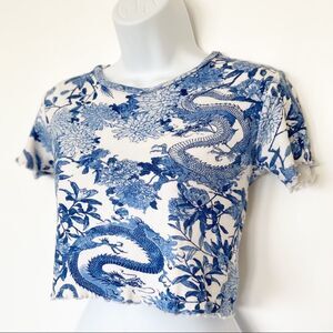 Castro Blue Dragon Cropped Tee | Size S | Y2K Tattoo Print