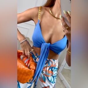 Casual Bahamian Delight Blue Two Piece Set Crop Top and Pants