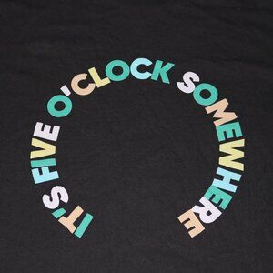 Stay stylish and comfortable with this black graphic tee featuring the fun phrase 'It's Five O'Clock Somewhere.' Ideal for casual outings.