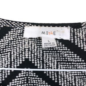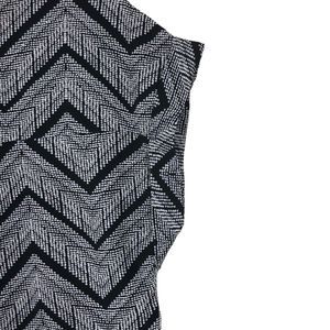 Casual Black & White Chevron Blouse Pullover w/Cuffed Cap Sleeves SZ L