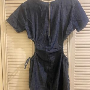 Comfortable denim dress featuring stylish side ties. Ideal for everyday wear.