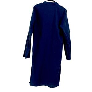 This casual blue dress features a sophisticated mock neck and long sleeves, perfect for a relaxed yet stylish look. The mandarin collar adds a touch of elegance to its minimalist design, making it a versatile addition to any wardrobe.