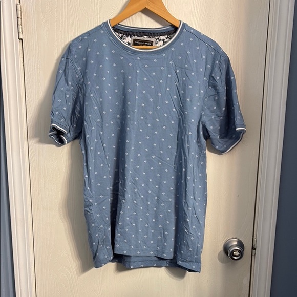 Elevate your casual wardrobe with this stylish blue tee featuring white polka dots. Perfect for everyday wear. Chest 20 Length 24