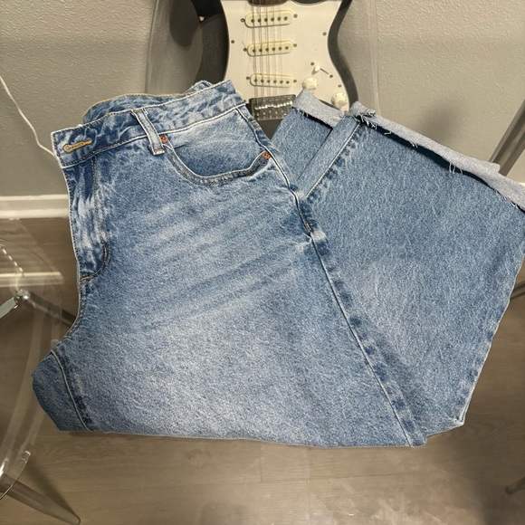 Elevate your style with these casual wide leg jeans. The classic blue color offers a versatile and timeless look.