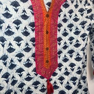 Casual Blue and Pink tunic with Plunge Neckline