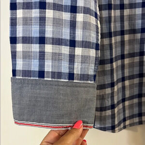 Casual Blue and White Plaid Button Down Shirt