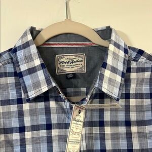 This casual button down shirt showcases a timeless blue and white plaid pattern, crafted from a comfortable cotton blend. Perfect for smart-casual occasions, it offers a versatile and stylish addition to any wardrobe.