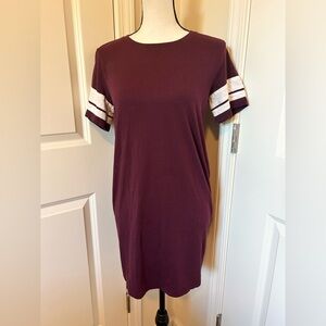 Casual Burgundy tshirt Dress with White Stripes baseball style