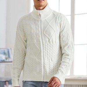 Casual Cable Knit Men's Cardigan w/Turtle Neck & D