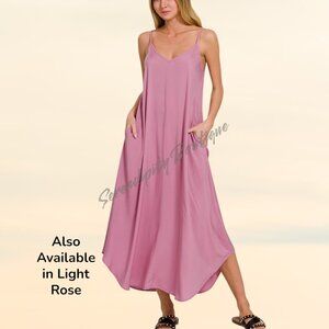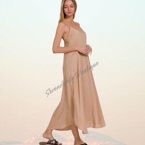 Casual Classy Effortless Everyday Cami Strap Flowy Tea Length Deep Camel Dress
