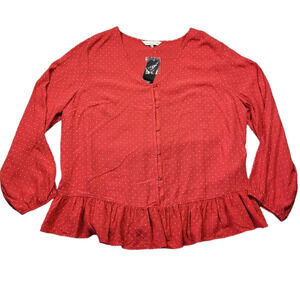 Casual Collection by F&F Polka Dot Top Flowy Button-up Red Coquette Ruffle