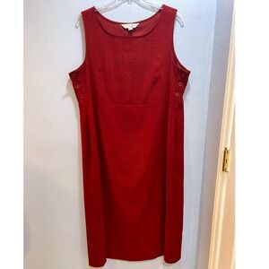 Casual Corner 1X Sleeveless Red Career Dress Textured Knit Side Buttons Classic