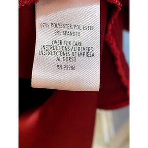 Classic and versatile, this Casual Corner Annex Woman dress in size 1X features a sleeveless silhouette with subtle side button detail and a flattering fit. The rich red fabric has a tonal textured plaid pattern and light stretch (97% polyester, 3% spandex) for comfortable wear. Perfect for the office, events, or layered with a blazer. Back zip closure. Gently worn and in excellent condition.
