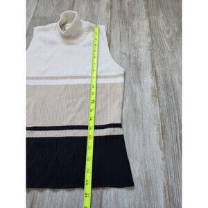 Casual Corner Annex Petite Sleeveless Sweater Mock Neck Blue Tan White Sz P