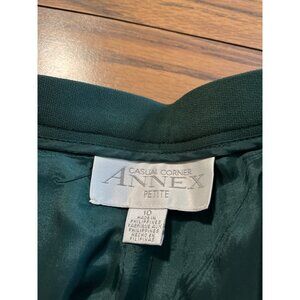 Casual Corner Annex Petite forest green lined dress pants size 10. Zips and buttons on right side. Waist measures approximately 14.5” side to side. Waist to hem measures approximately 37.33”. Really good pre-owned condition.