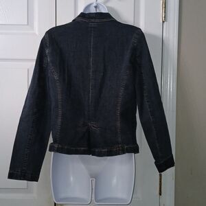 Casual Corner Annex Petite Stretch Denim floral embroidered jean jacket Sz M