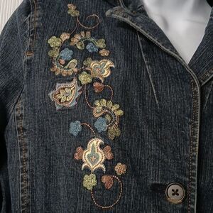 Casual Corner Annex Petite Stretch Denim floral embroidered jean jacket