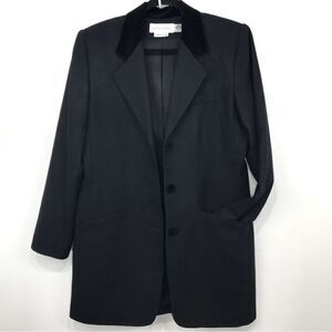 Casual Corner Black 100% Wool Velvet Collar Equestrian Riding Blazer Jacket