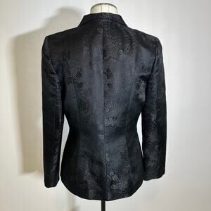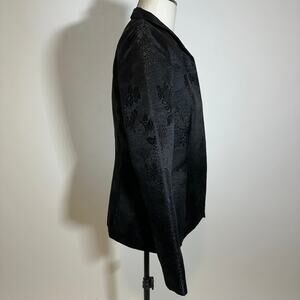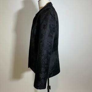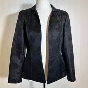Casual Corner Black Brocade Open Front Blazer Suit Jacket Career