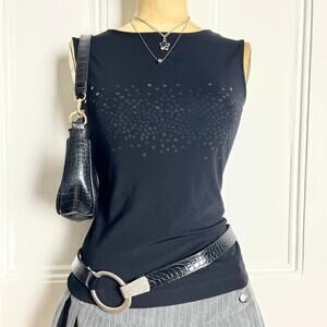 Casual Corner Black Sequin Tank Top glam festive Whimsygoth 🌟