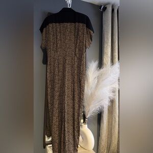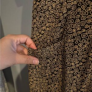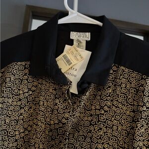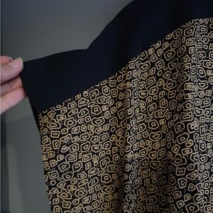 Elegant blouse with intricate black and cream design. Ideal for versatile styling.