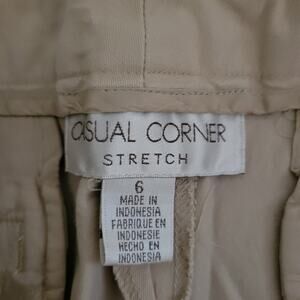 Get ready to rock these Casual Corner stretch khaki flare leg pants in size 6! These pants are in excellent condition, with no rips, stains, or tears. The waist measures 13 inches, the length is 39 inches, and the inseam is 29.5 inches. Don't miss out on this stylish and comfortable addition to your wardrobe!