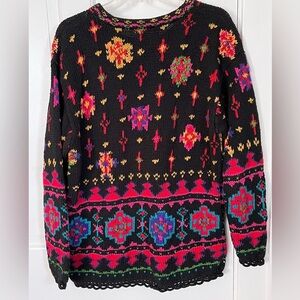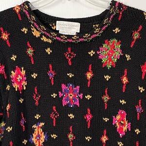 Casual Corner Limited Edition Vintage Hand Knit Allover Embroidered Sweater M